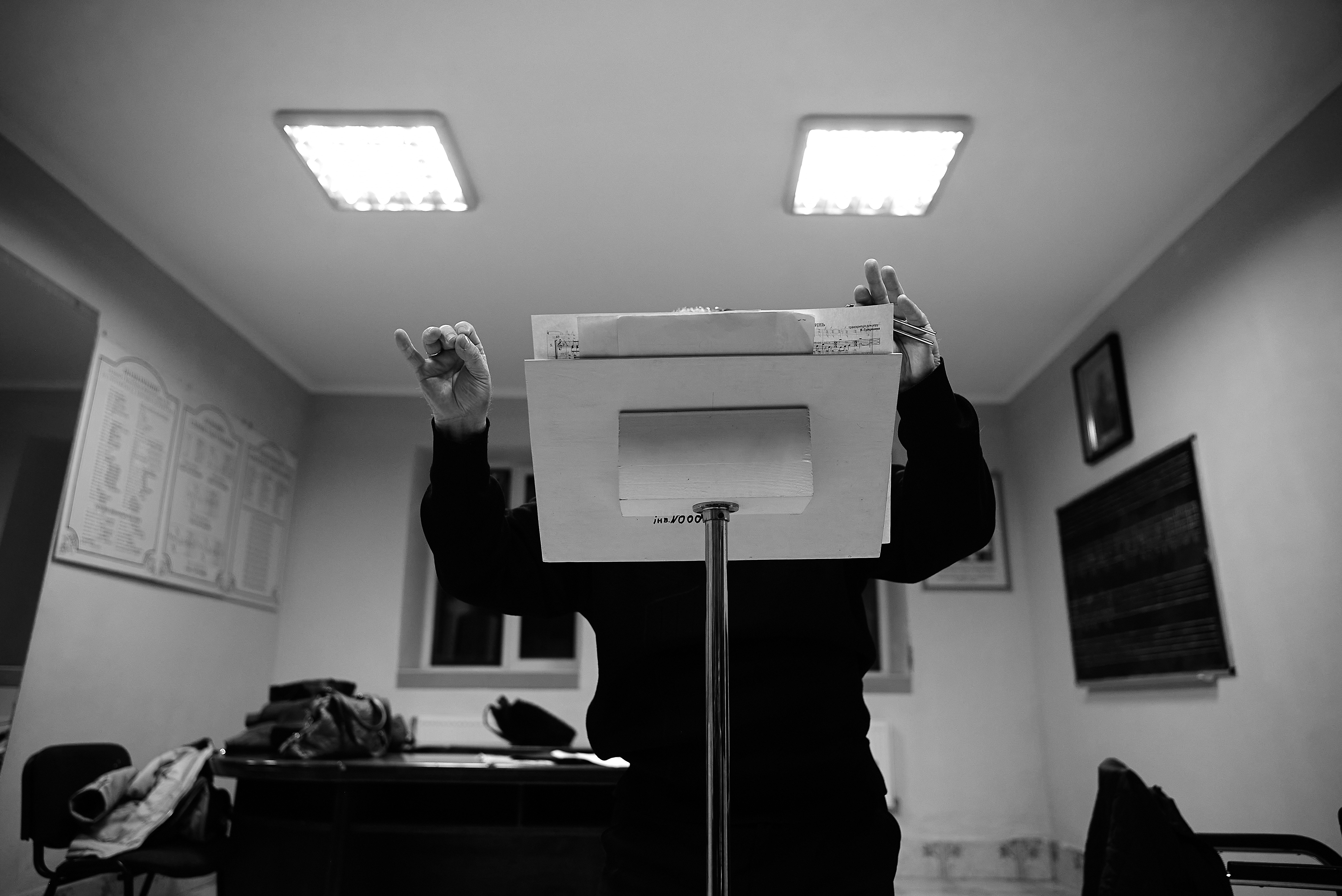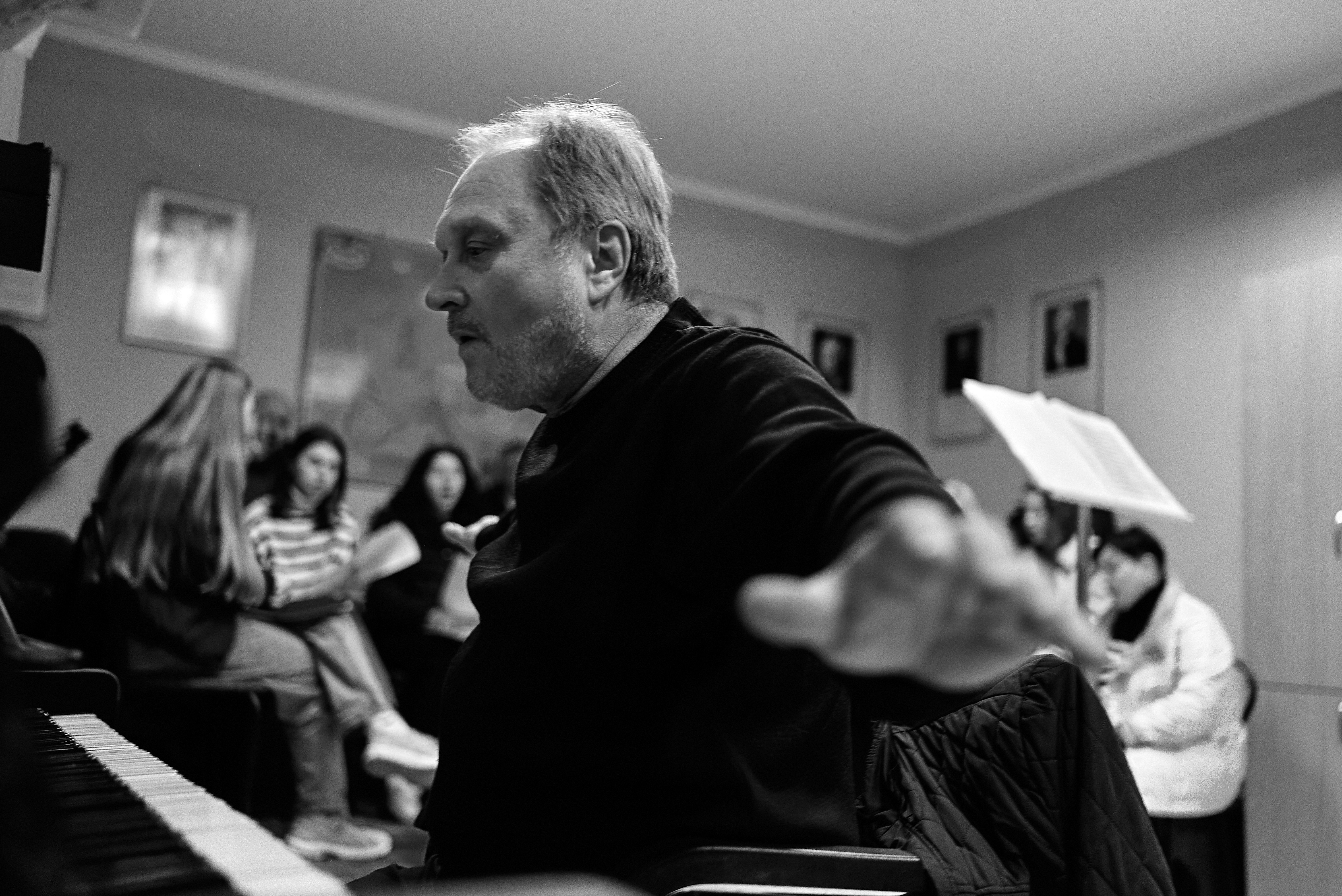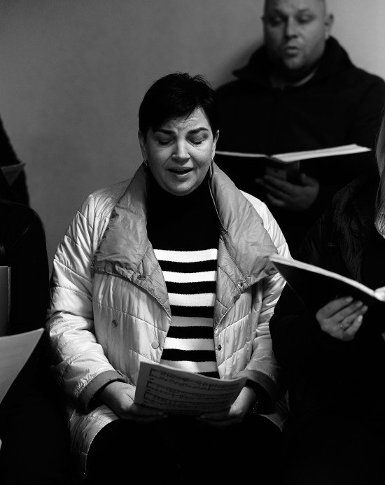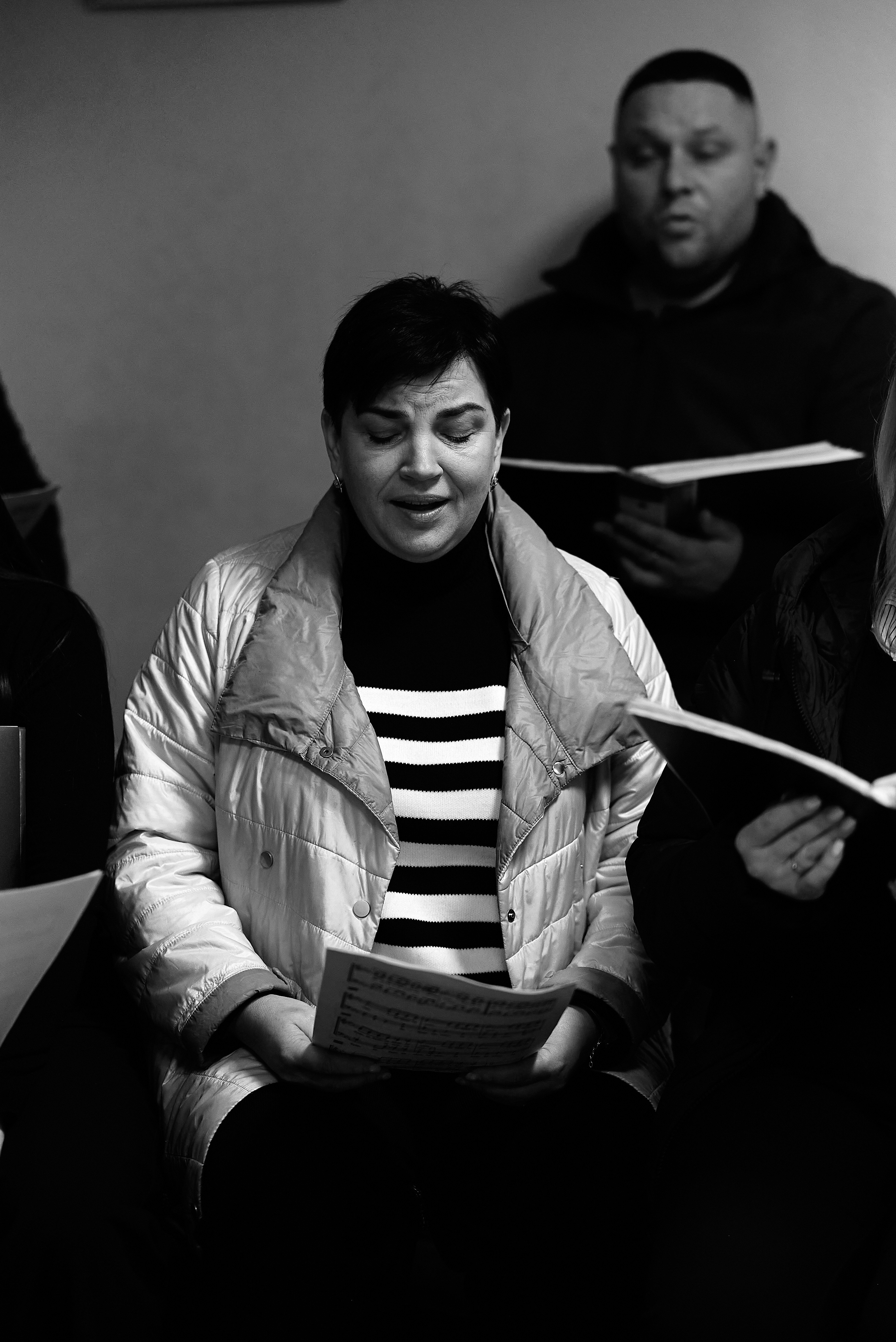 Контрасти репетицій: експресія диригента на тлі статичного хору.