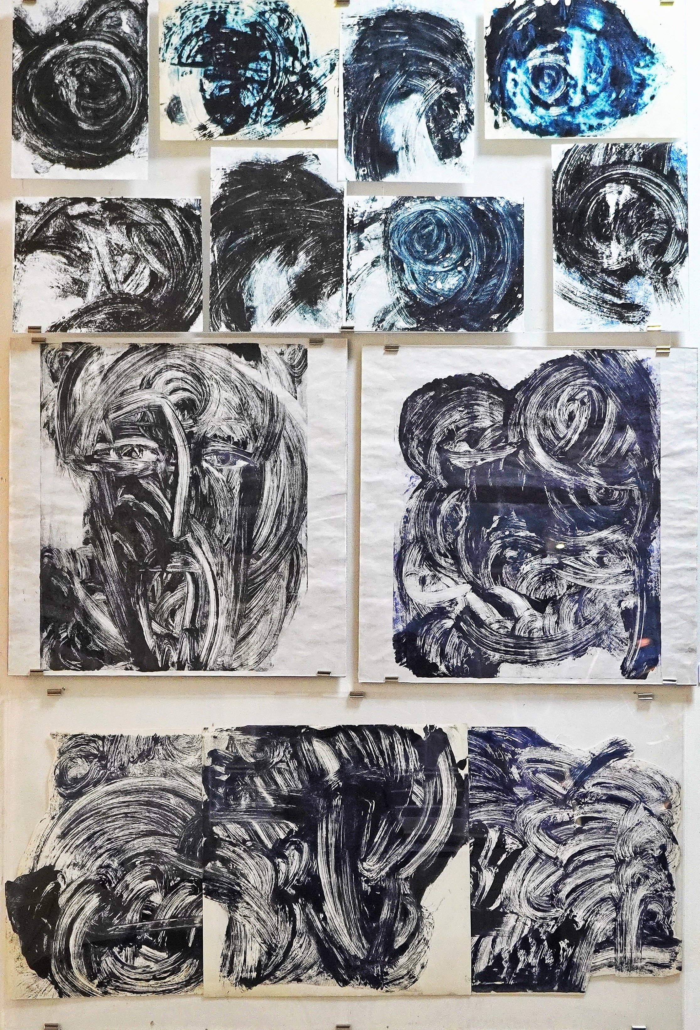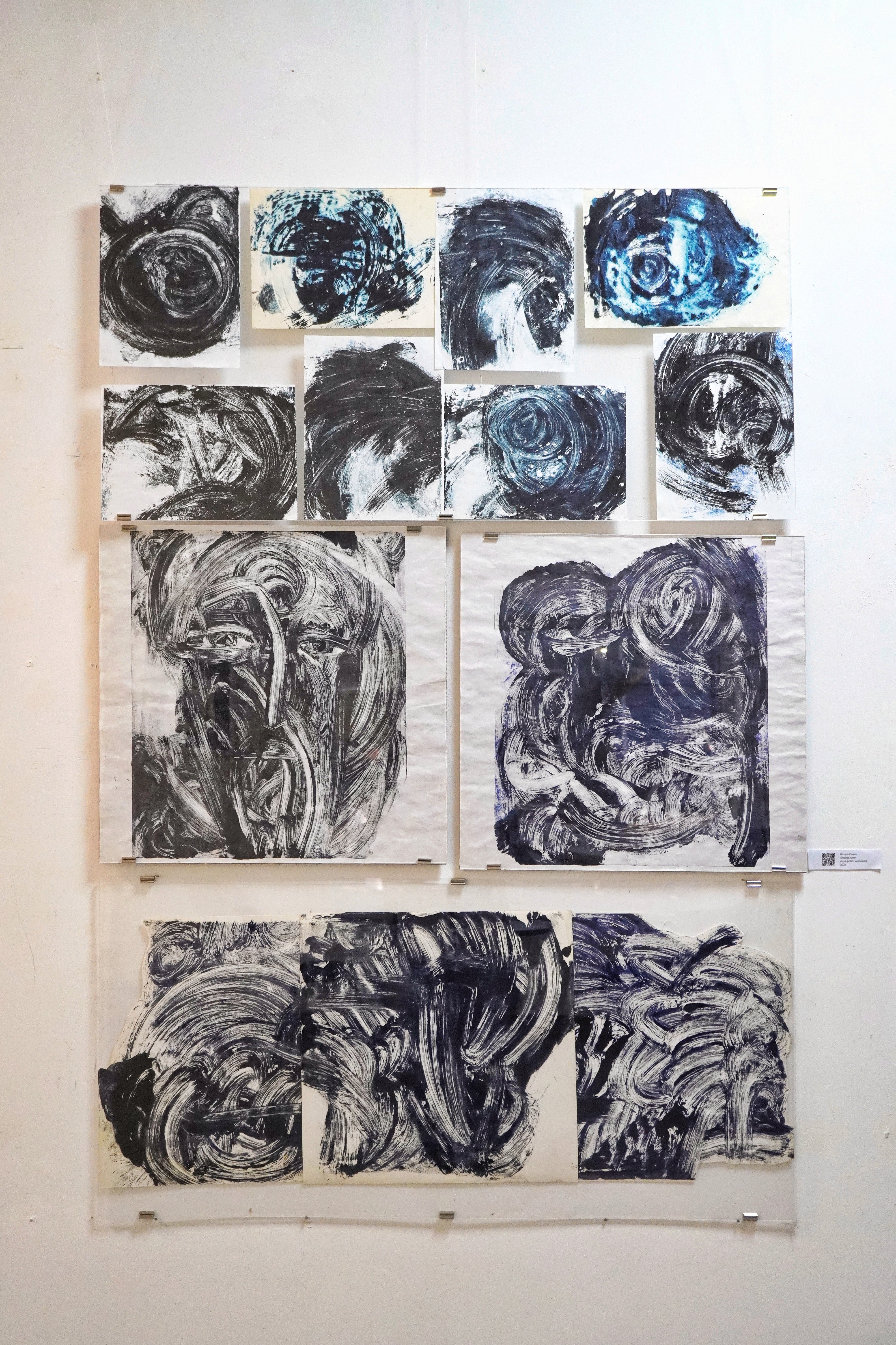Перед вами — серія зображень у техніці монотипії — друкованої графіки, яка створюється за допомогою відбитку малюнку з твердої поверхні (скла, пластику або металу), на аркуш паперу.