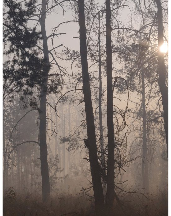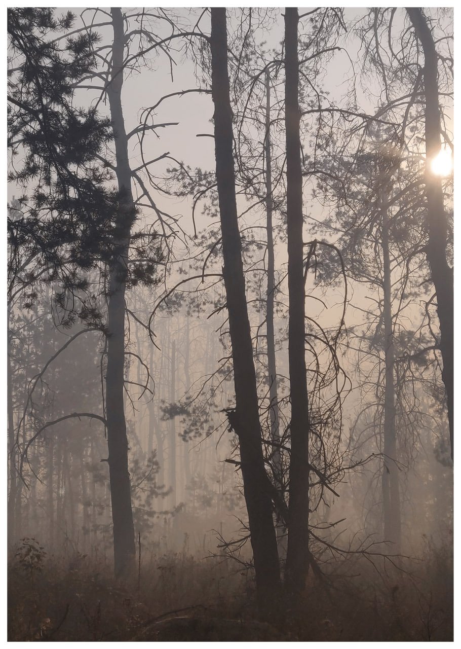 Лиманський ліс на Донеччині. Міг сидіти там годинами, спостерігаючи за життям, яке тривало навколо — метеликами, павуками, мурахами, довгоносиками, богомолами та іншими комахами. Знімкував також «бойових» собак та котів, що прибивалися до хат чи бліндажів. Ну, і звичайно — лісові пейзажі: високі стрункі сосни, обтяжені війною.