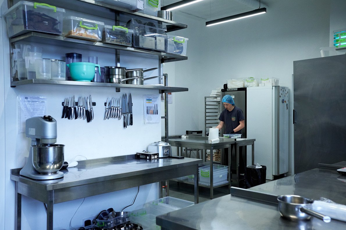 «Знову і знову тестуємо рецептуру, бо веганська безглютенова паска не вибачає помилок. Вона має бути не просто корисною, а ідеальною на смак», — усміхається Діана, спостерігаючи за роботою команди.