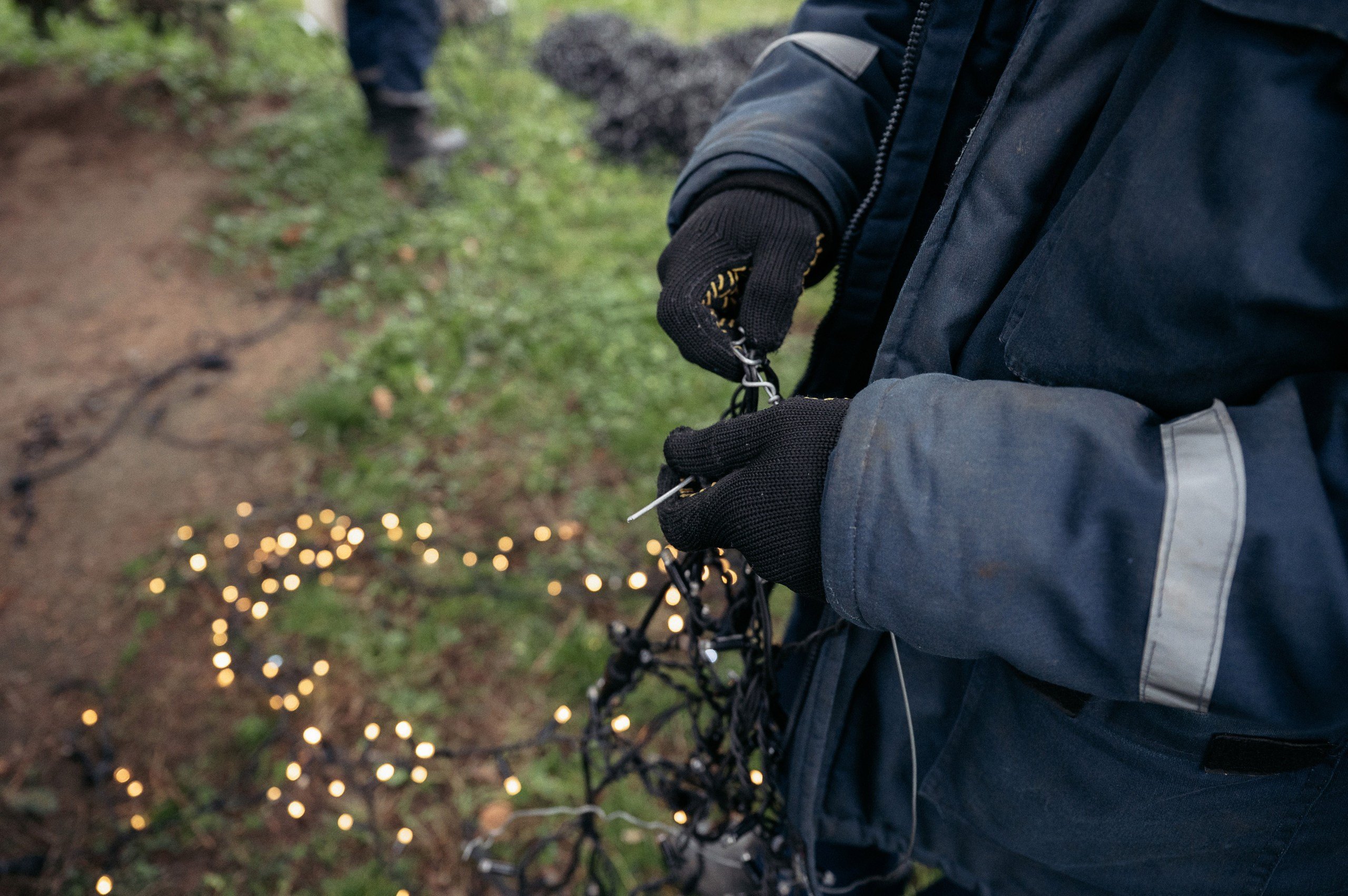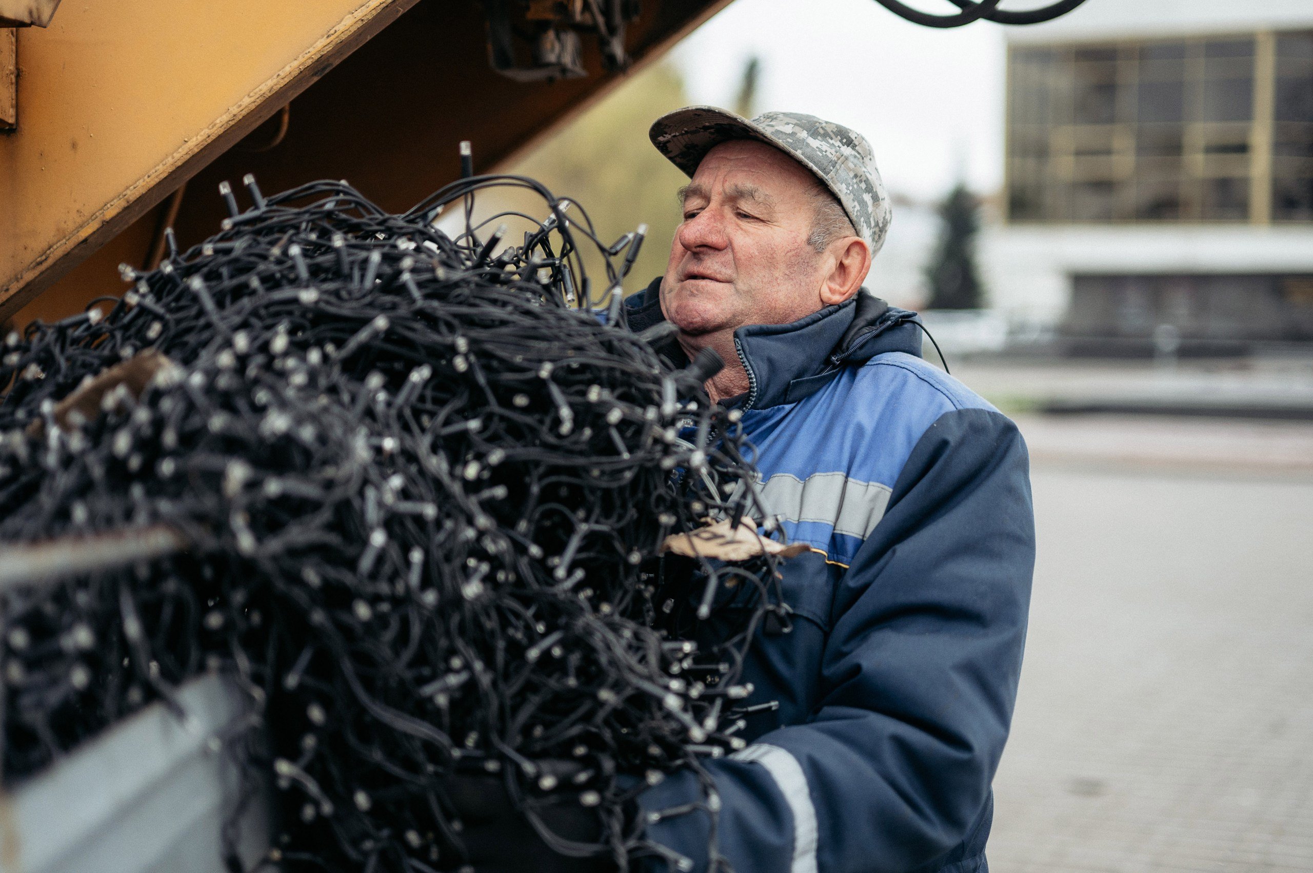 Електромонтер — неговіркий, звик працювати мовчки. Своє заняття не романтизує — трудиться та й годі. Поки вовтузиться з великими коробками з ілюмінацією, коротко пояснює схему роботи.
