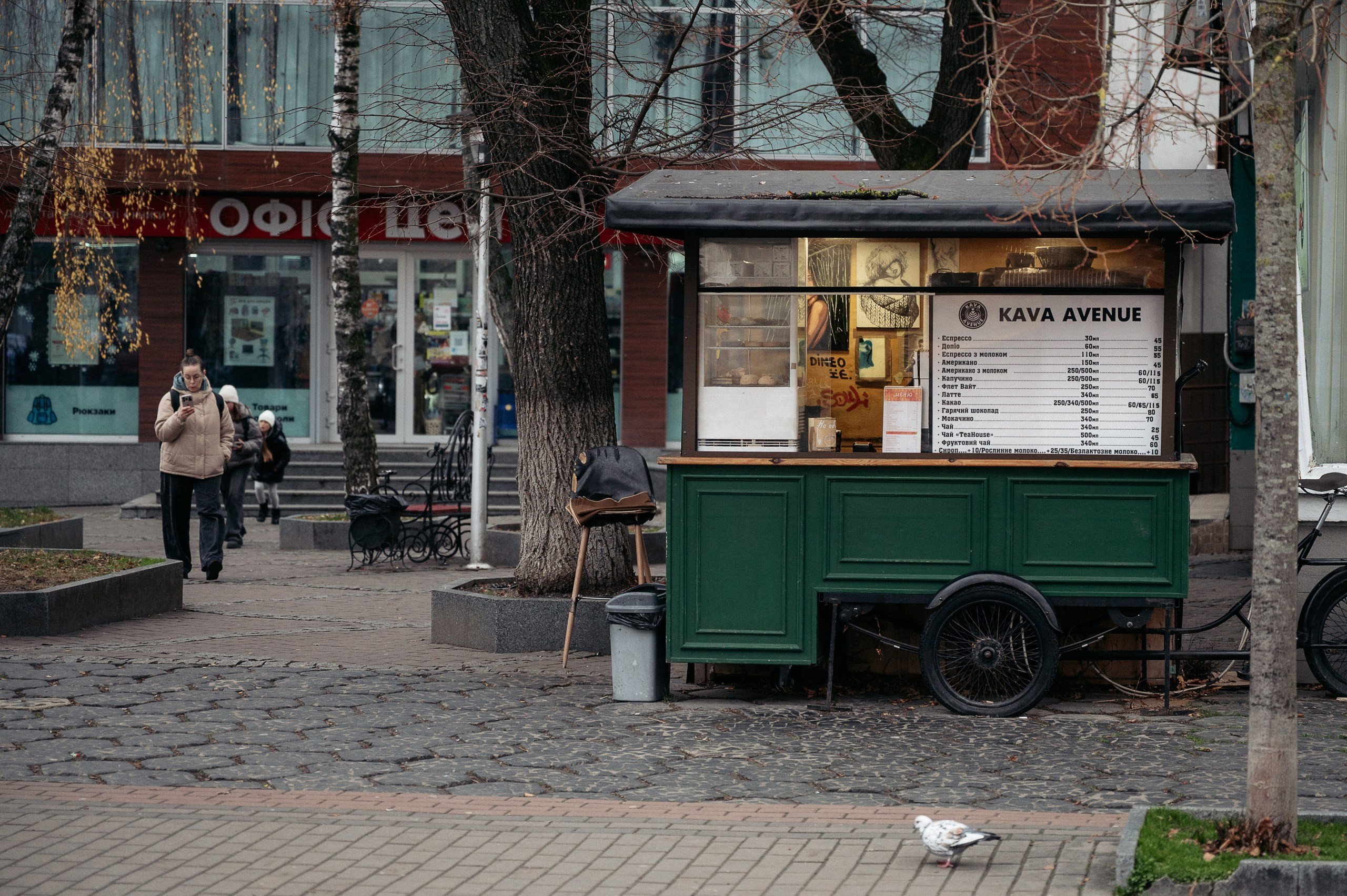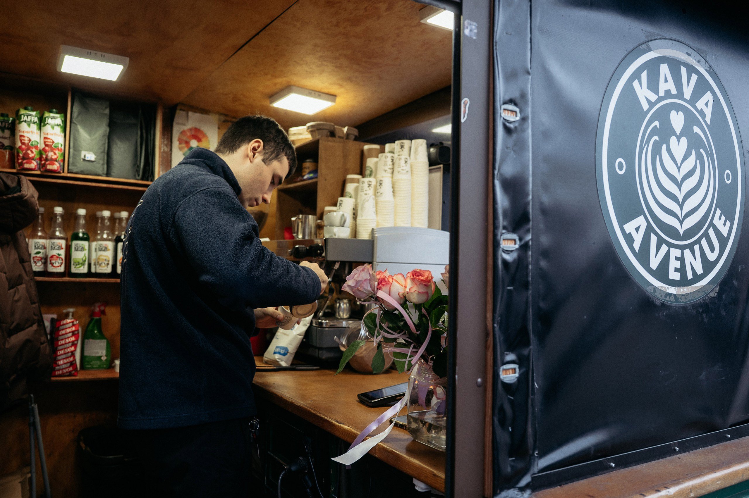 Коли Луцьк ще позіхає, молодий бариста відчиняє двері маленького кіоску Kava Avenu на Лесі Українки. Пішохідна вулиця тоді тиха, асфальт вологий після ночі, лише чути, як неподалік пролітає, мов привид, напівпорожній тролейбус. Хлопець з ясно-блакитними очима й срібним кільцем у вусі підіймає металеву ролету, яка служить дверима у крихітному вагончику, вмикає світло та обігрівач, запускає кавомашину. Запах свіжозмеленої арабіки повільно розповзається приміщенням, як тепла ковдра, й вислизає надвір.