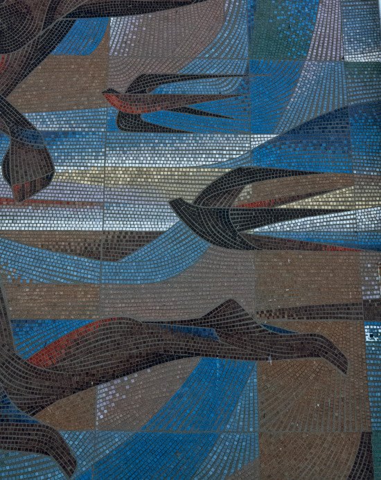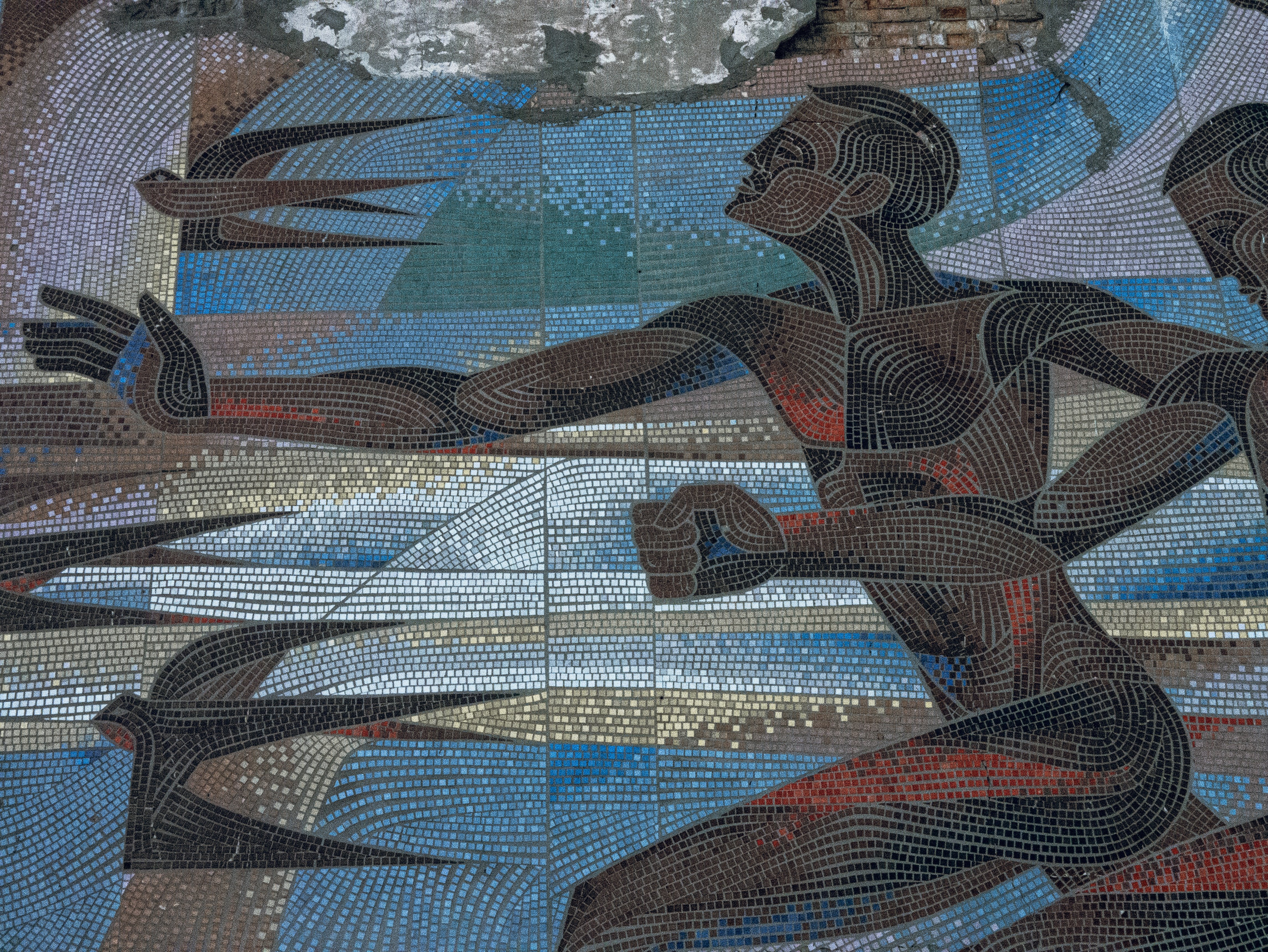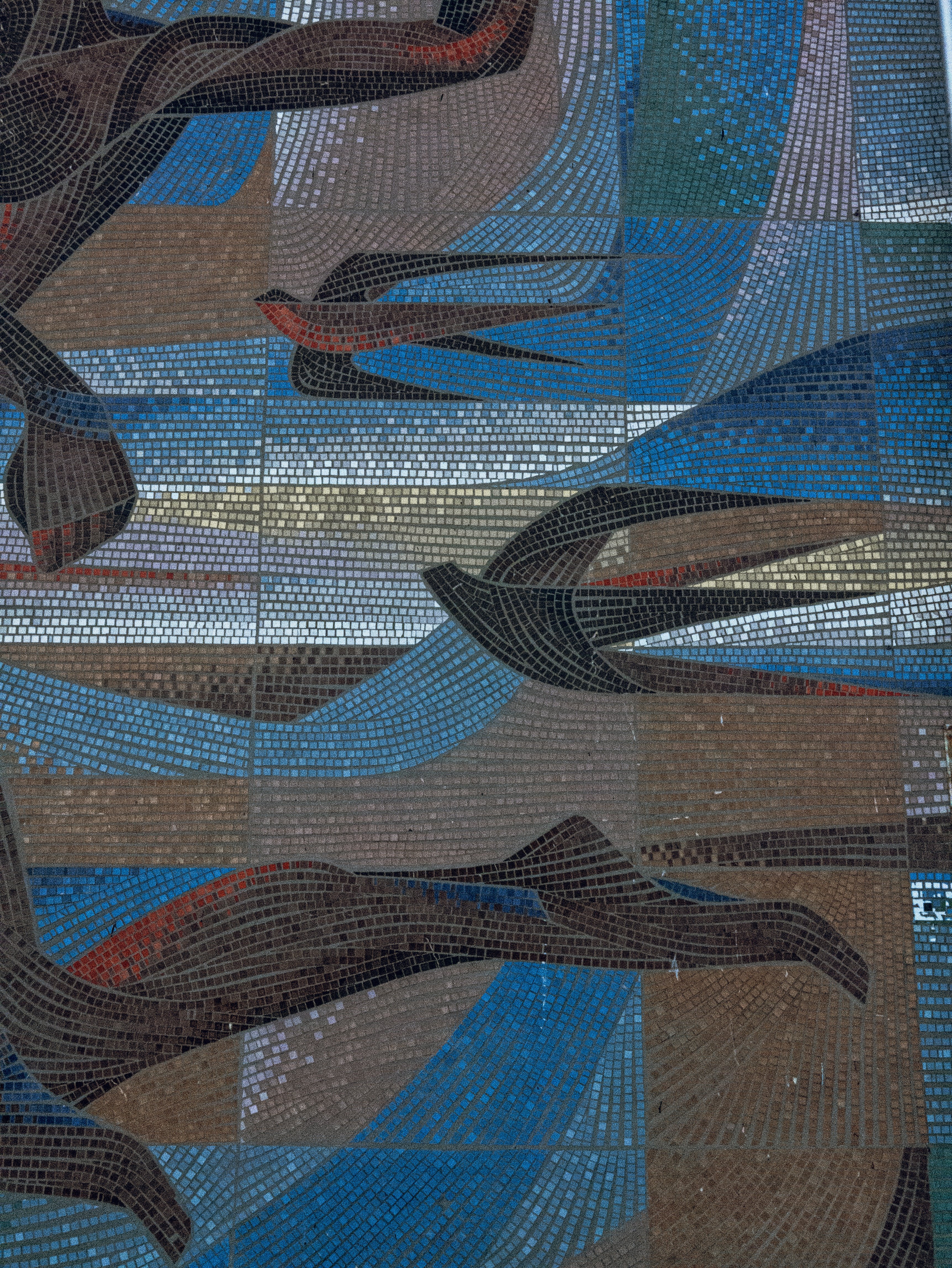 Кольори — тьмяні: теракотовий, пісочний, бурий, каштановий, кавовий, нюдово-рожевий, персиковий, смарагдовий і (невже?) синій із жовтим. Тесери — кубики мозаїки — викладені за формою м’язів героїв панно, що свідчить про майстерність художника. І, незважаючи на дату створення (1981), жодної радянської символіки — дат, гасел, зображень, кольорів.