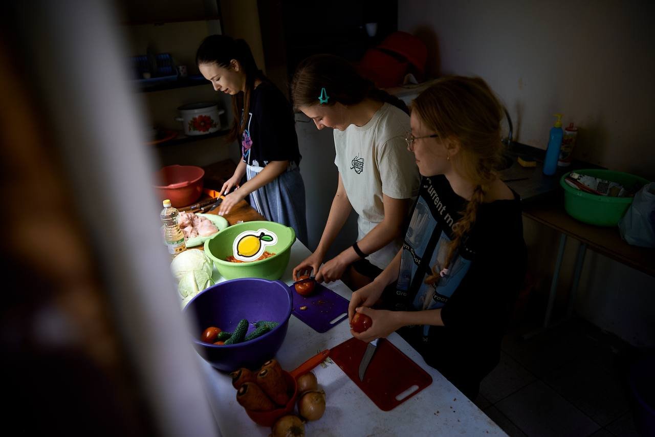 Тим часом на кухні готують обід та розпалюють вогнище. Поки решта пластунів грають у мафію, йдемо на запах диму, цибулі й помідорів, а ще — на пісню.