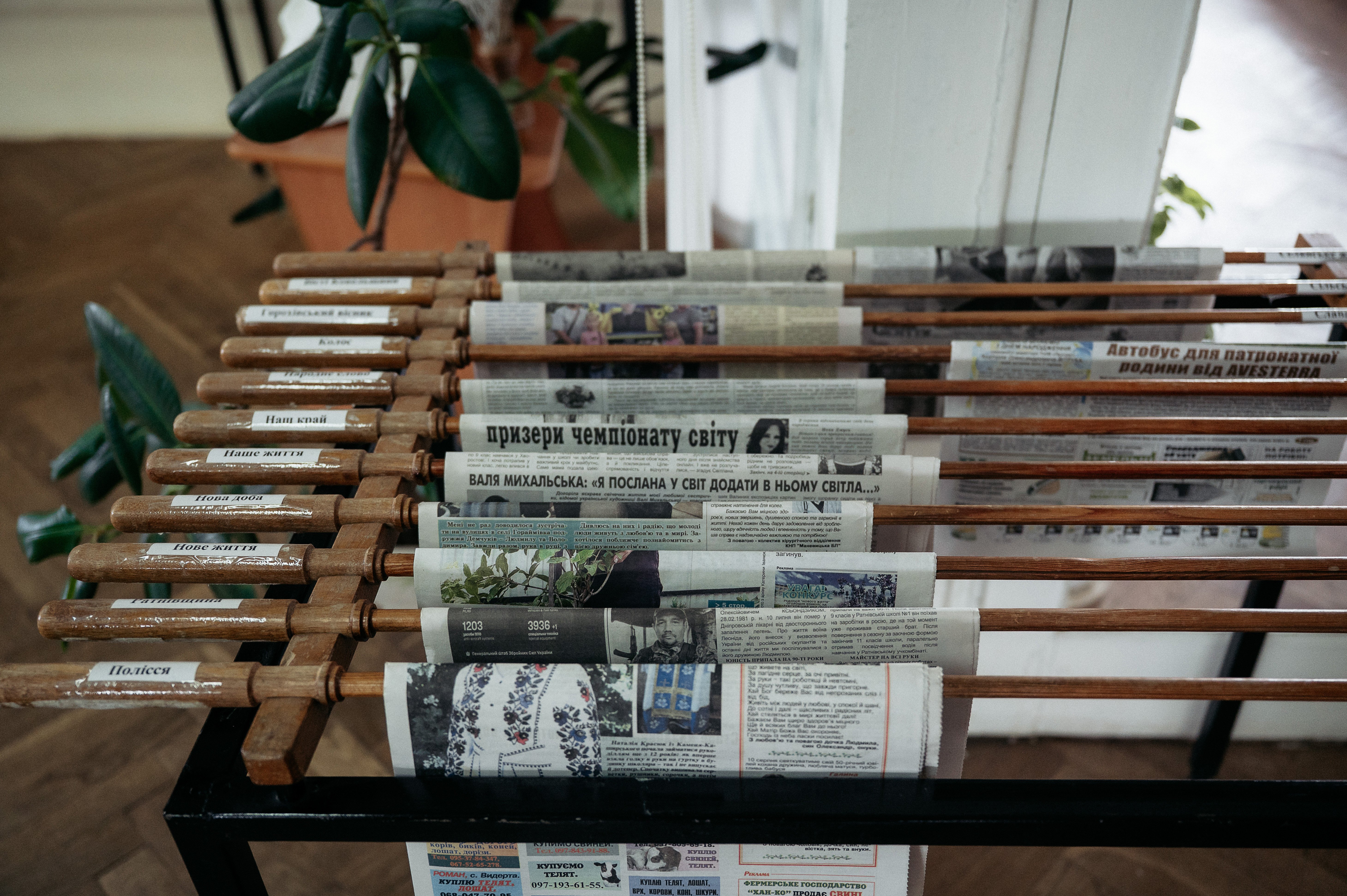 Тут зберігається понад шістсот назв журналів і три сотні газет. Найдавніша — «Радянська Волинь» за 1945 рік. Шпальти жовті й подекуди заклеєні скотчем — газетний папір крихкий й недовговічний. Обережно перегортаю сторінки. Великим шрифтом надруковані заголовки про могутність радянської держави, відбудову, перемогу, нові трактори.