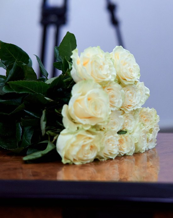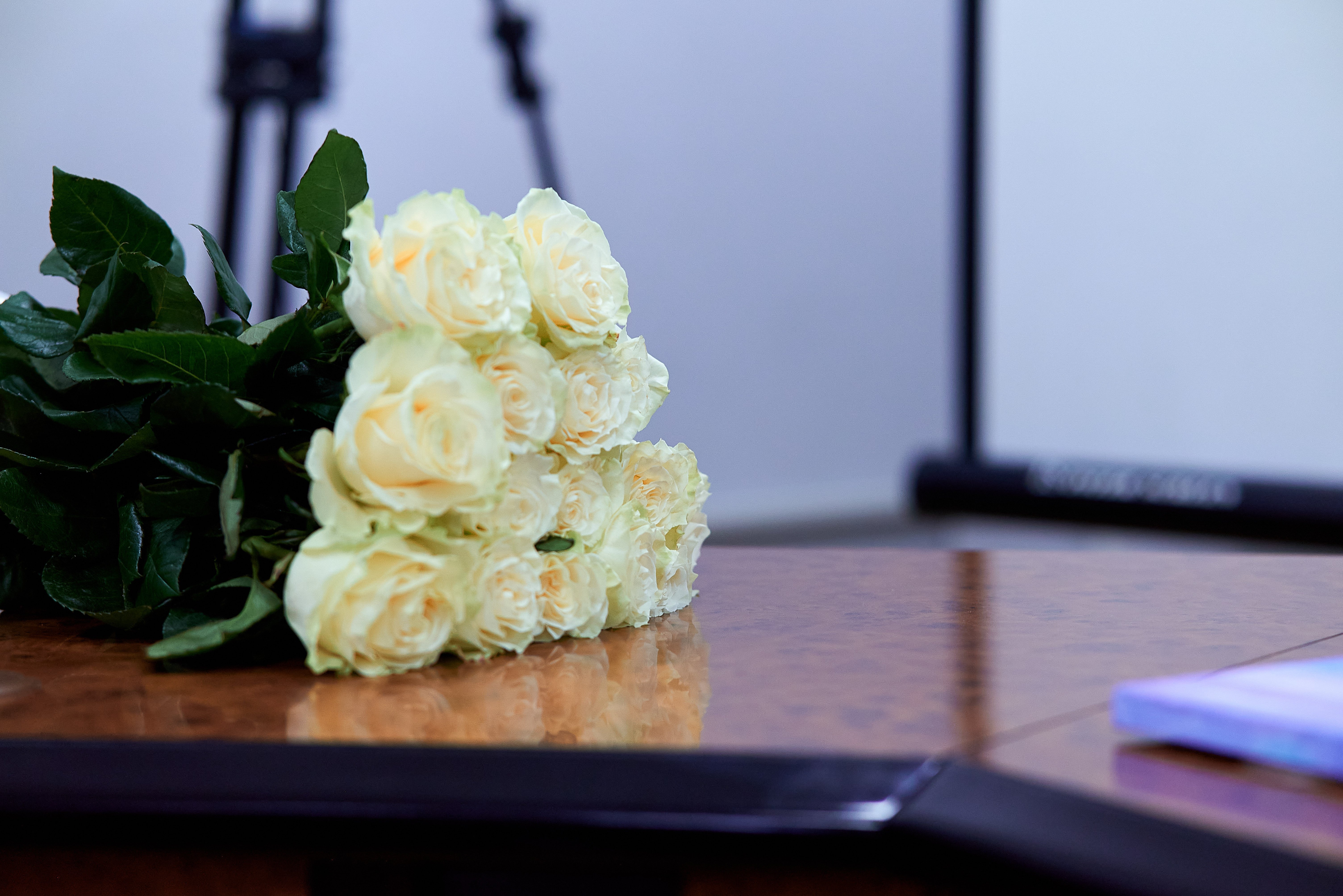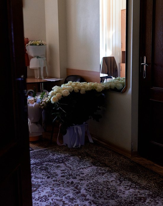 12:15. У залі починається підрахунок, тим часом заносять два оберемки пахучих троянд — червоного та білого кольорів.