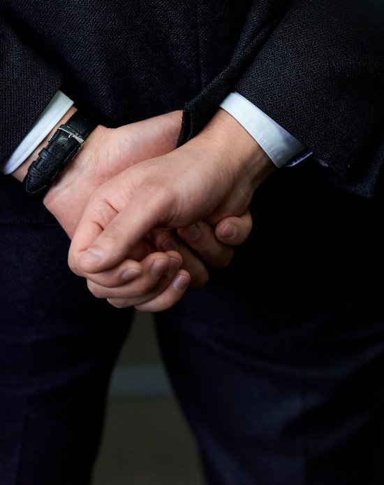 Очільник департаменту економічної політики Борис Смаль (у синій сорочці). Знавці сказали би, що його мова тіла свідчить про закритість.