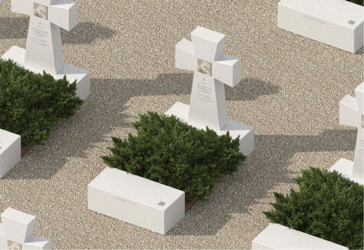 А з якого матеріалу виготовлятимуть надмогильні плити, ще остаточно вирішуватимуть із родинами. Архітектори зараз завершують виготовлення пробних зразків. Окрім терраццо, розглядатимуть такі матеріали як пісковик та навіть граніт. Остаточне рішення буде за родинами похованих.