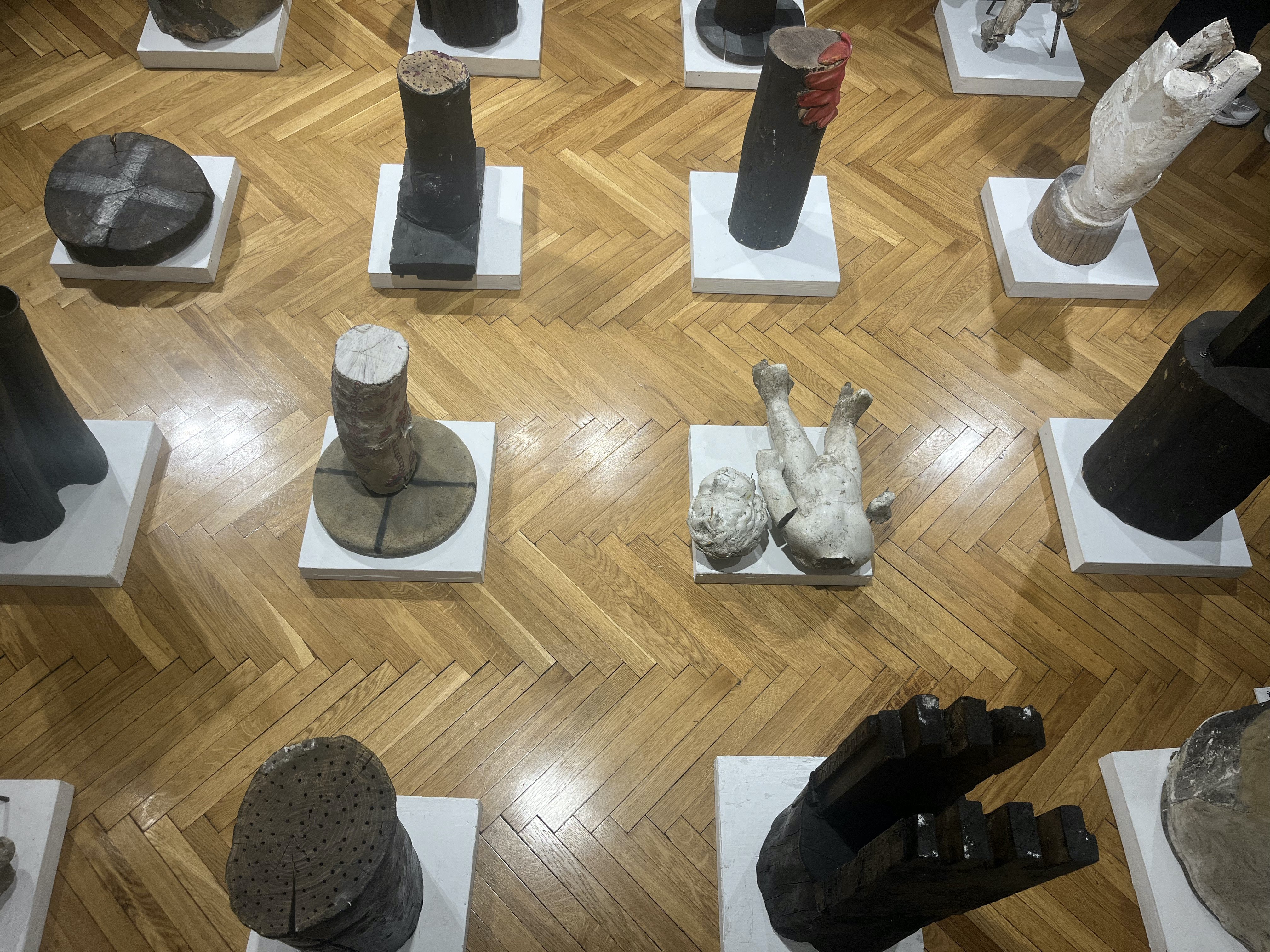 Приміром, одна з центральних робіт виставки «Садочок мого діда Сави 1947» — це артоб’єкт, який розповідає історію про знищений сад. У 1947 році радянська влада ввела податок на дерева, і всі, хто не мали змоги сплачувати його, мусили придумати хитромудрий спосіб знищити власні дерева й сади. Адже за просто зрізані дерева людей могли звинуватити в навмисному уникненні сплати податків.