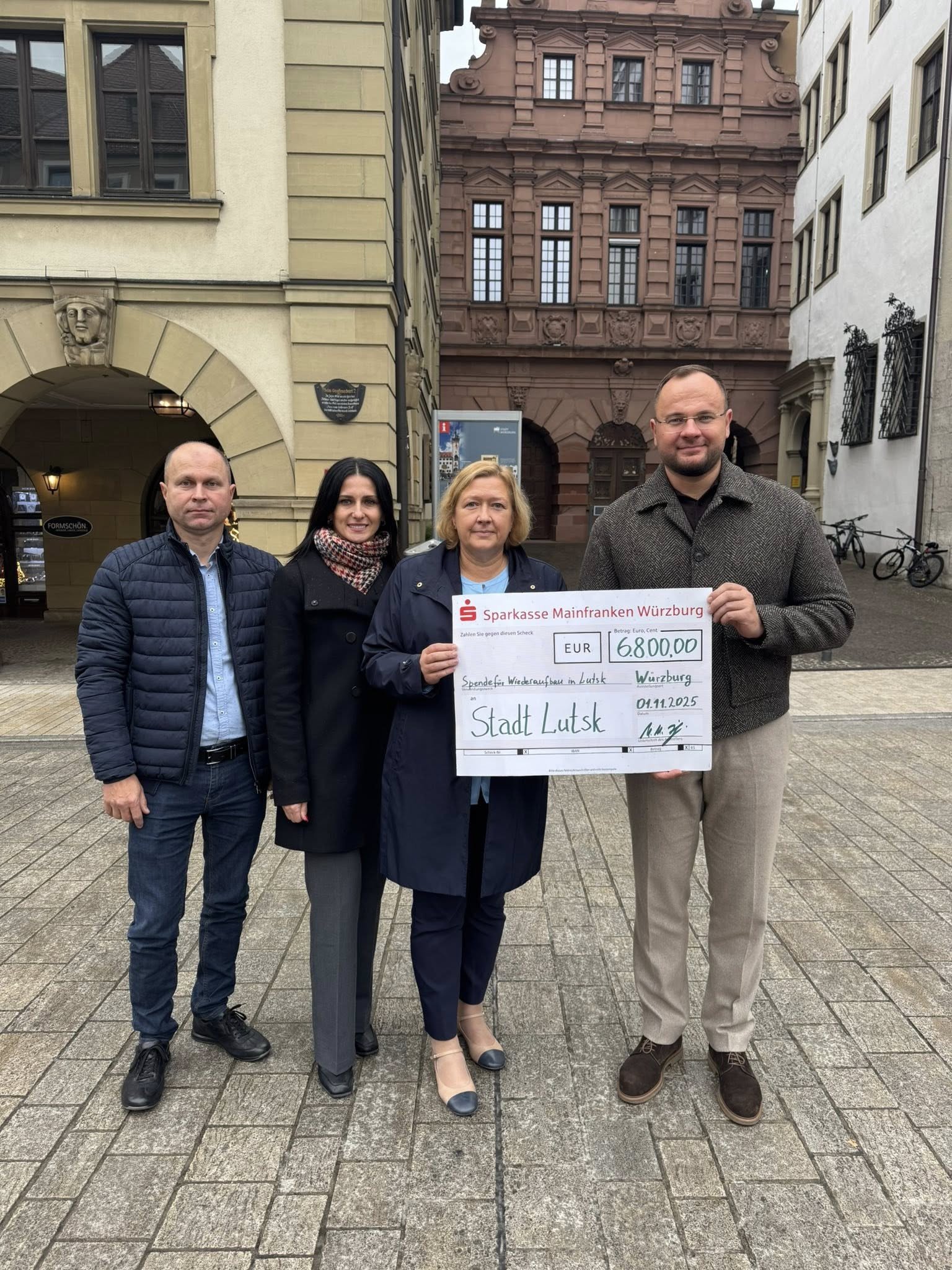 Чек на суму 6 800 євро перша заступниця мера Вюрцбурга Сандра Ворлова вручила міському голові Луцька Ігорю Поліщуку. Зустріч відбулася в межах його робочого візиту до Німеччини.