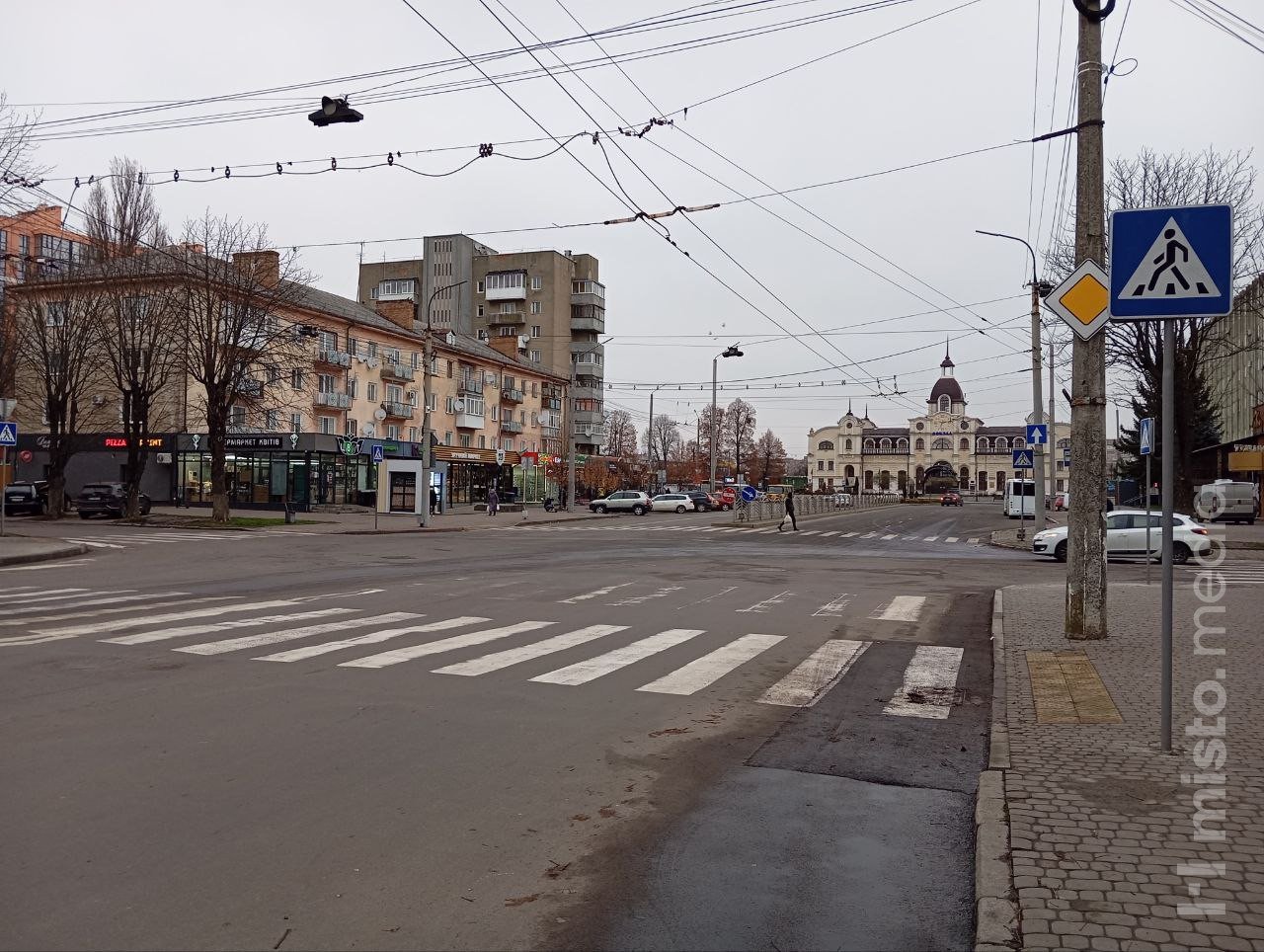 На перехресті автомобілі, що повертають із просп. Грушевського на вулицю Привокзальну, часто блокують рух і перекривають прохід пішоходам. Людям доводиться маневрувати між машинами, що створює небезпечні ситуації.