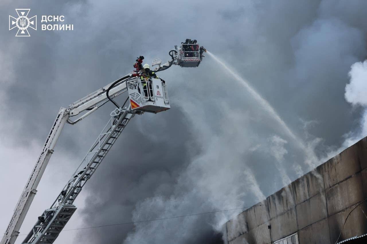 Оновлено 11:57. За повідомленням волинських рятувальників вогонь локалізували о 9:24. Залучили 12 одиниць техніки, робот для пожежогасіння. Працюють понад пів сотні рятувальників. Пожежу загасили 6 грудня об 11:55.