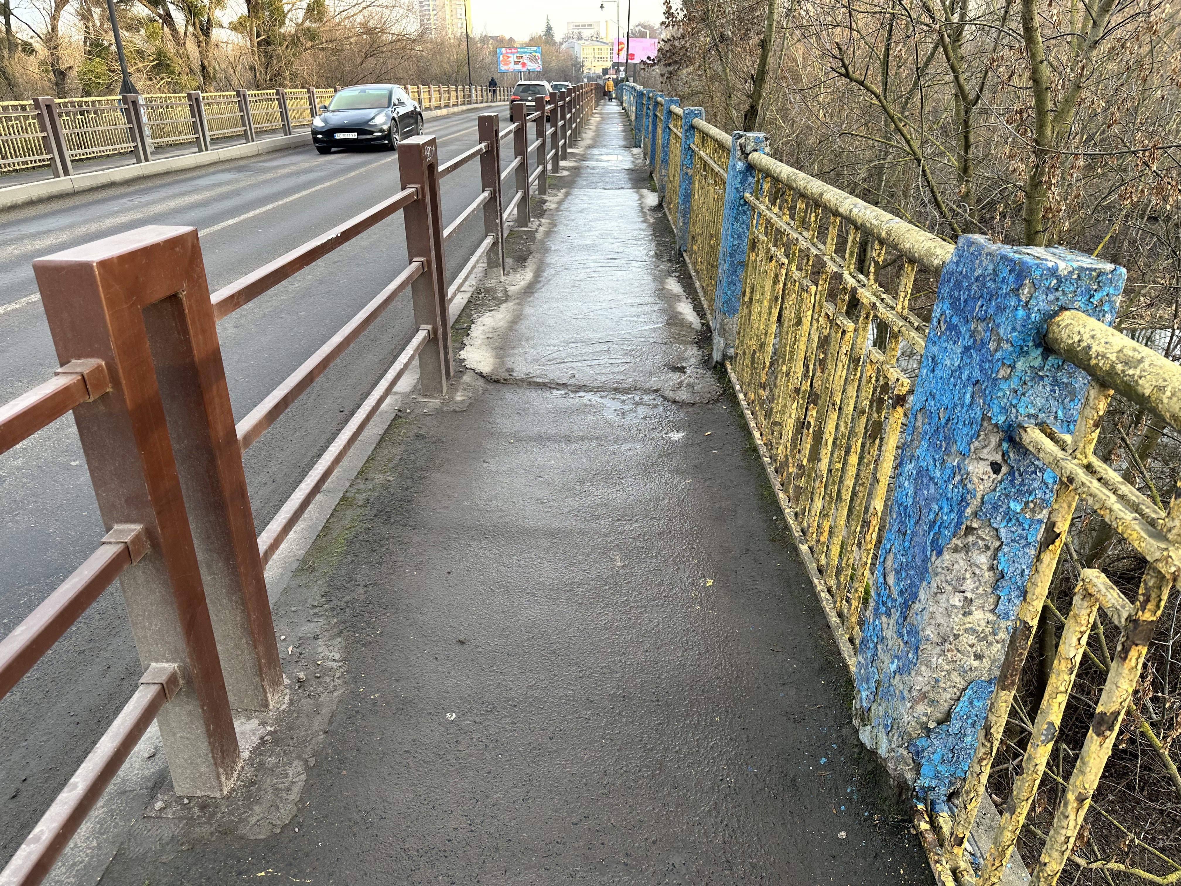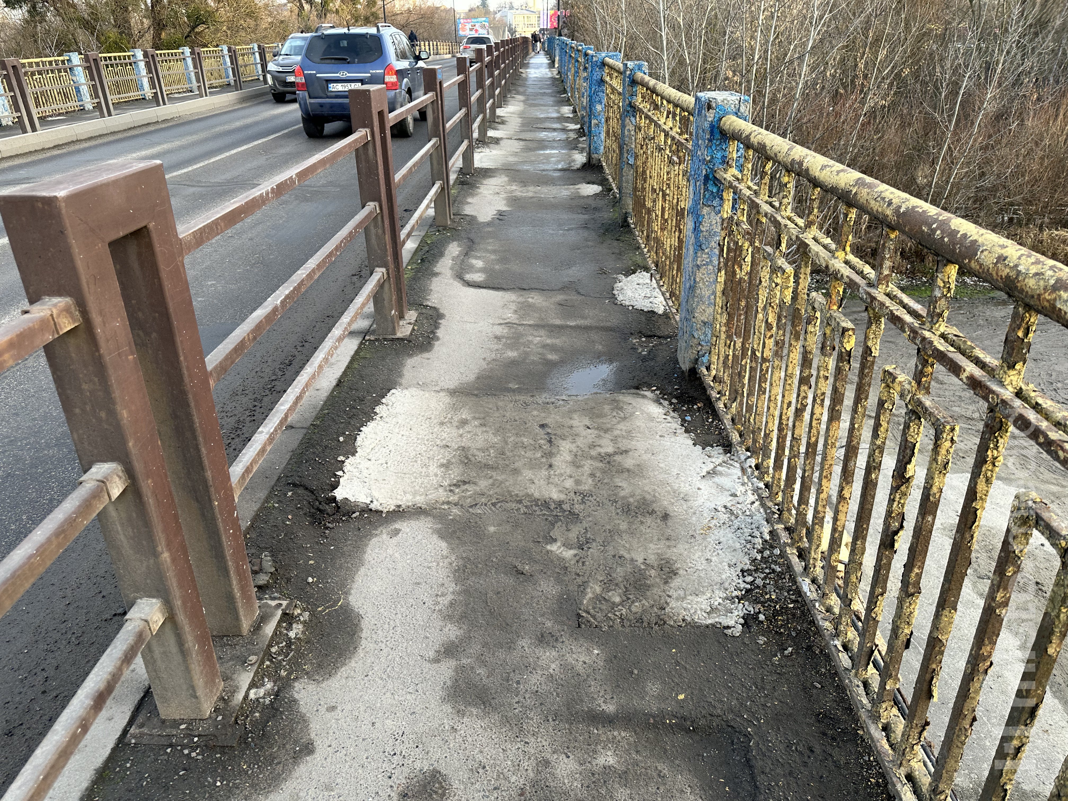 Раніше йшлося, що міст давно потребує ремонту, адже на тротуарі утворилися тріщини і провалився асфальт. Зараз там тривають тимчасові роботи: забетонували та відремонтували тротуари, повідомив міський голова Ігор Поліщук.