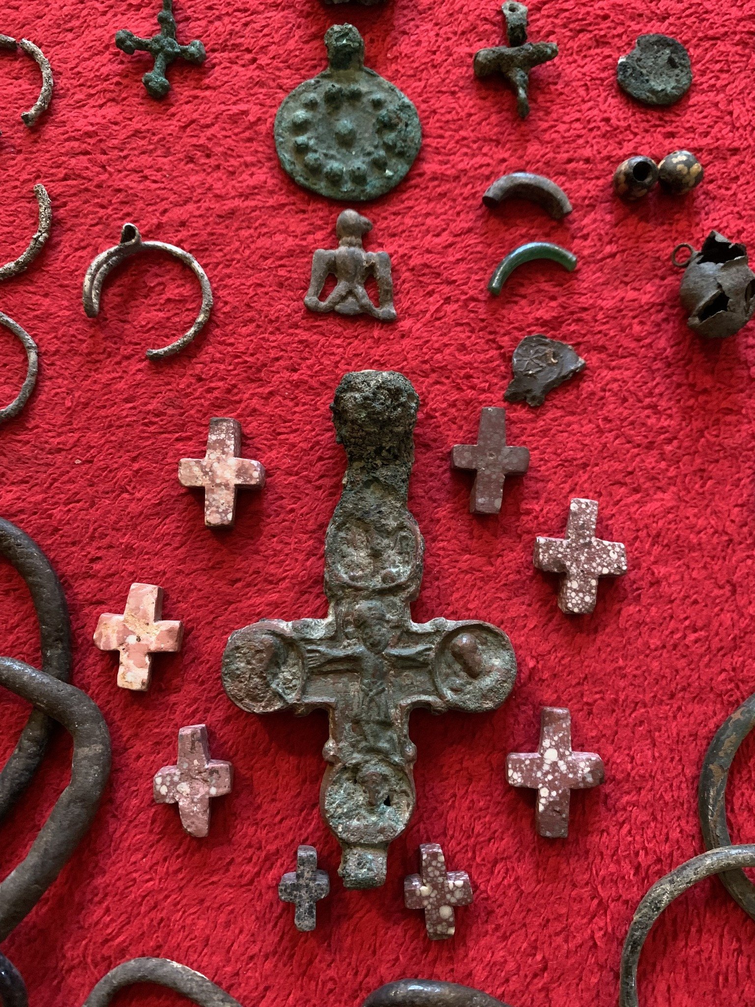 17 невеликих натільних хрестиків із бронзи та мармуру;