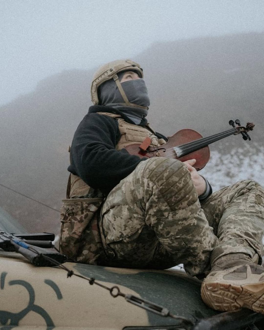 Він став відомим завдяки відео у соцмережах, на яких виконує композиції на скрипці безпосередньо на передовій.