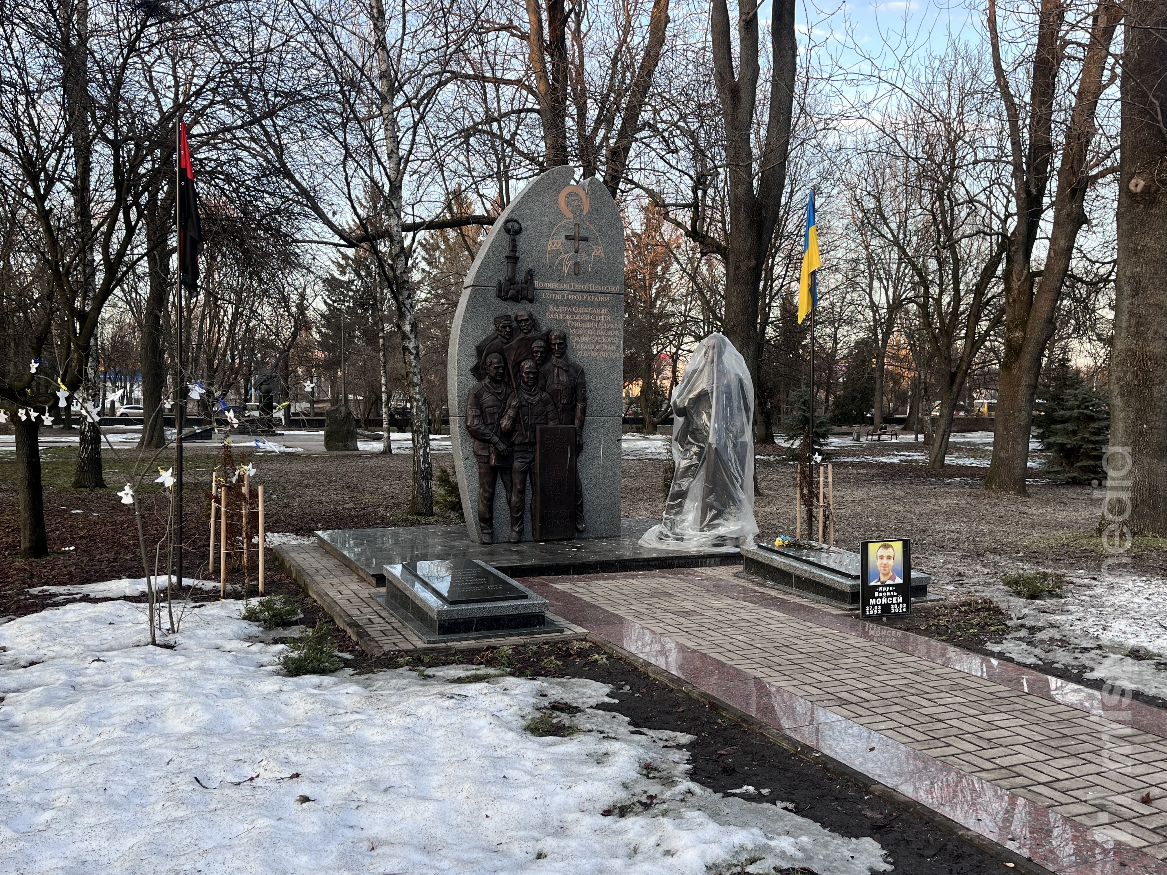 У Луцьку на меморіальному комплексі «Вічна слава» на просп. Василя Мойсея тимчасово накривали частину пам’ятників захисними плівками.
