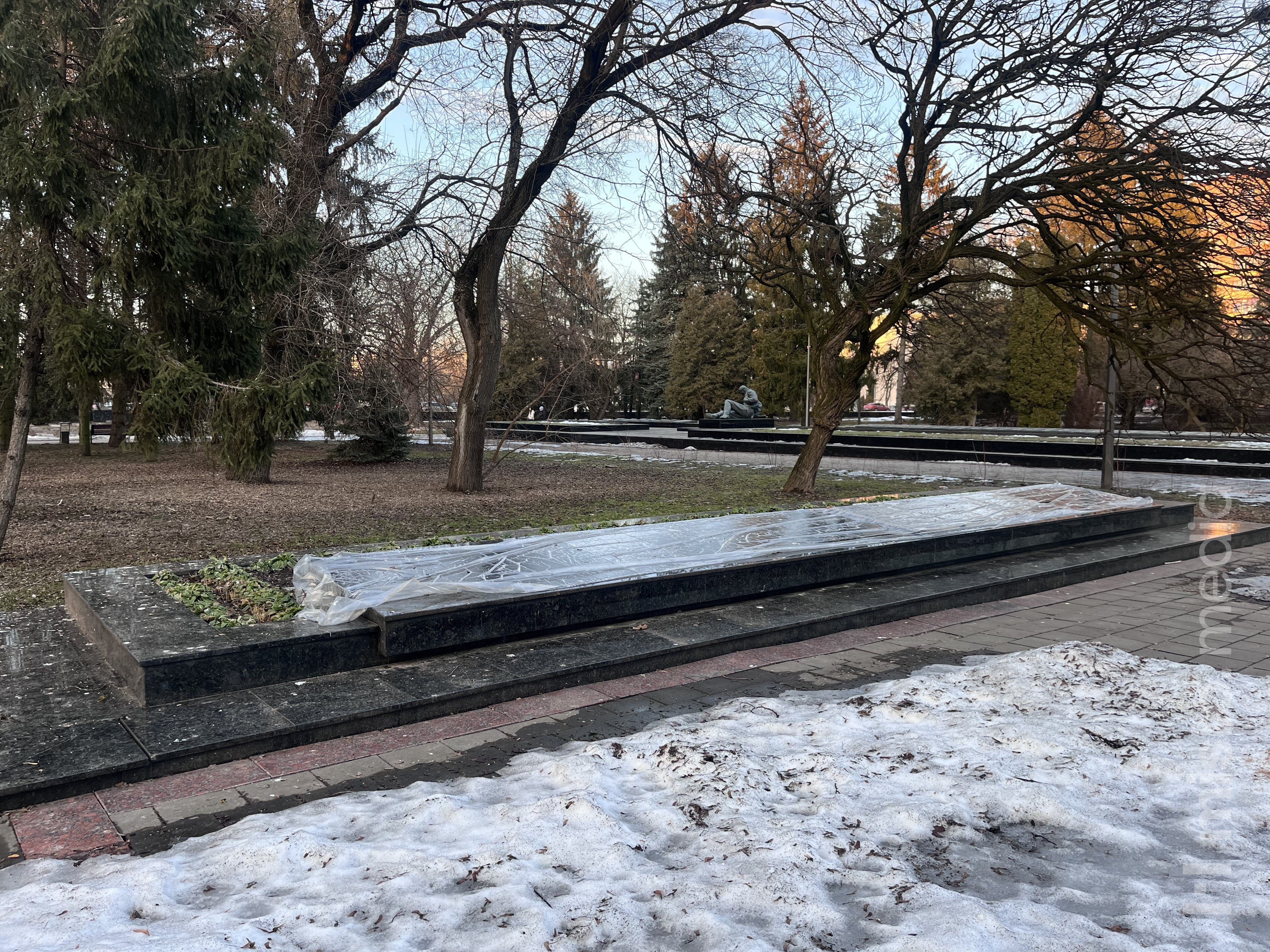 Станом на сьогодні захисну плівку з пам’ятників на меморіалі вже зняли.