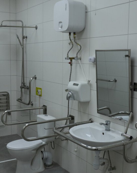 Поруч із залом є душ та санвузол, доступний для людей з інвалідністю.