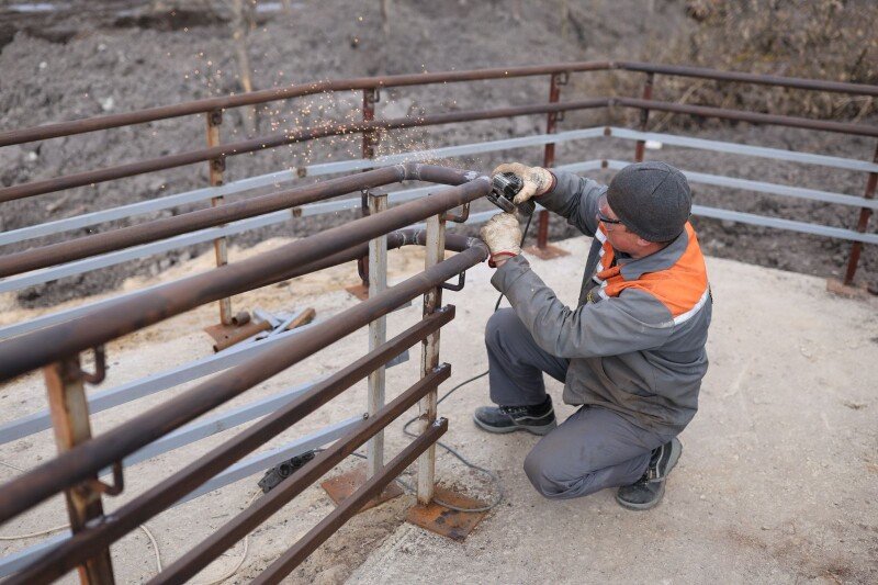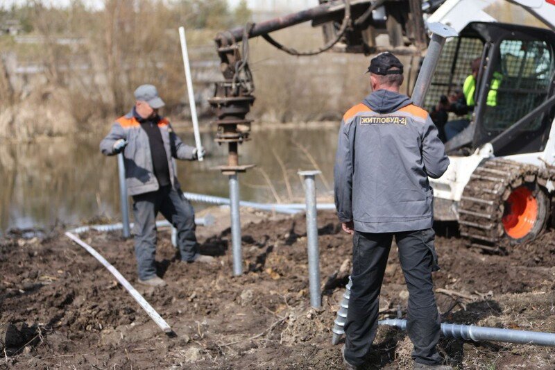 Нині монтують доріжки з терасної дошки — їх ставлять на оцинковані палі, які забивають у землю. Також вирівнюють територію та готують гравійно-набивні доріжки.