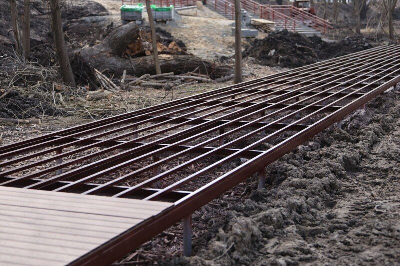 У новому парку на Набережній монтують доріжки з терасної дошки