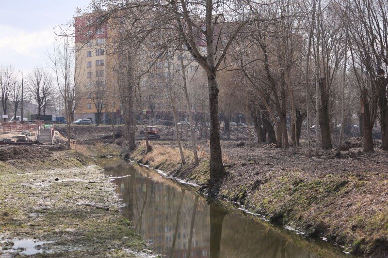 У Луцьку продовжують облаштовувати новий парк на вулиці Набережній — між мостами на вулиці Ковельській і Шевченка. На території вже видно майбутні стежки та галявини.