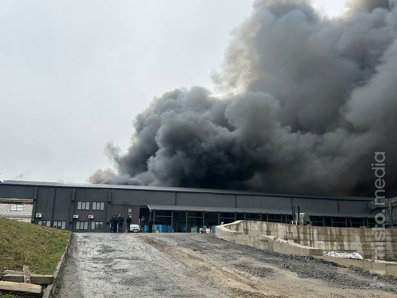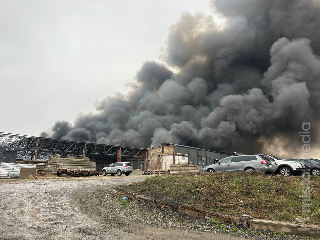 У житловому будинку рятувальники завершили гасити пожежу, а на території підприємства ліквідація наслідків триває. Над містом стелиться густий чорний дим.