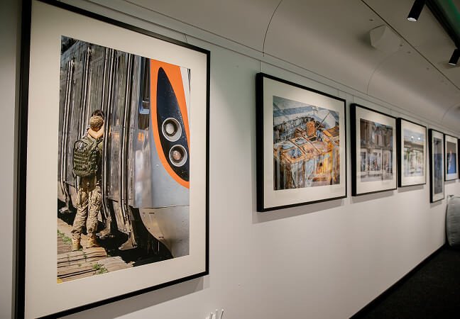 Експозиція називається Courage of a Nation (Відвага нації) і відображає стійкість та надію України під час війни через фотооб’єктив американського фотографа, друга України Говарда Баффета.