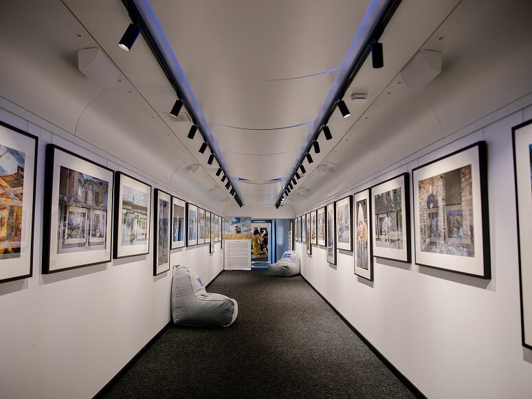 Два вагони перетворили на виставкові зали. Фото: arttrain.uz.gov.ua