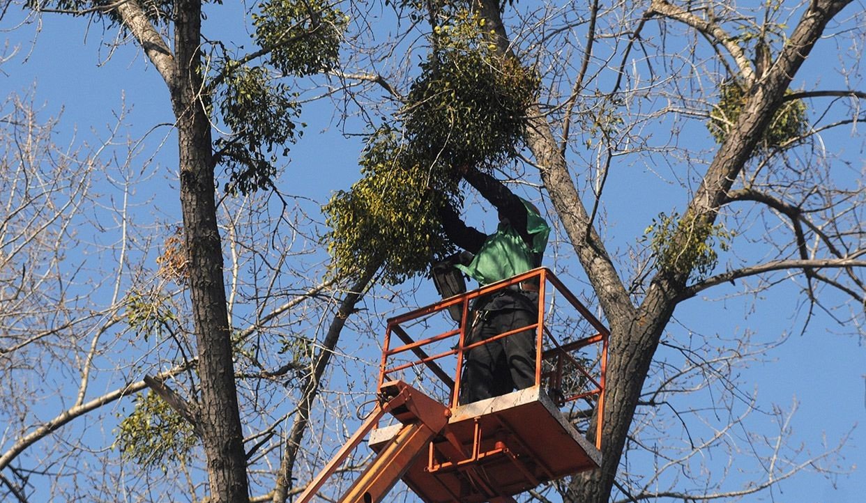 Як чистять омелу у міських парках