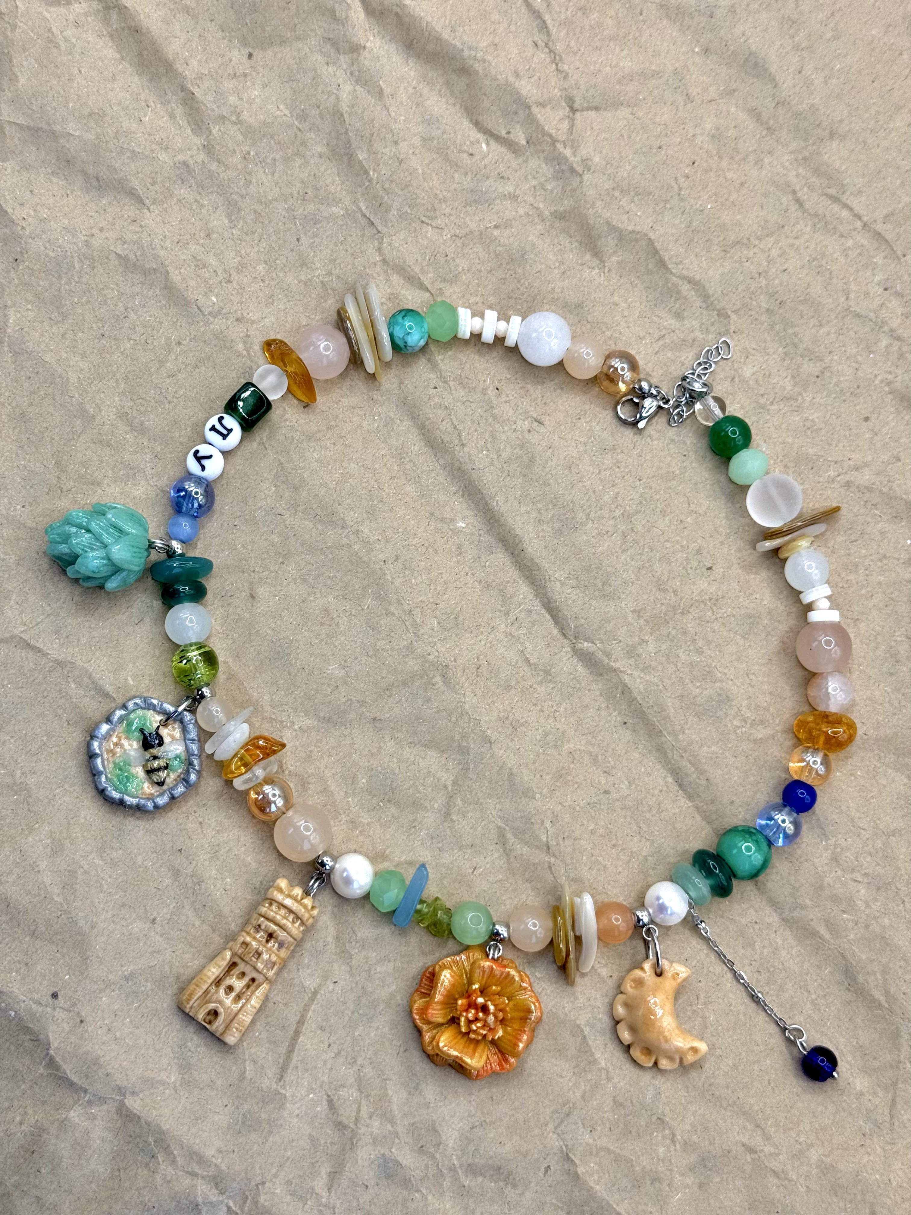 «Вона передала атмосферу Луцька так, що кожен елемент з’явився природно, ніби сам попросився у композицію. Без її бачення, кольорів і спогадів це намисто було б зовсім іншим. Я лише допомогла тим відчуттям знайти форму», — розповідає майстриня.
