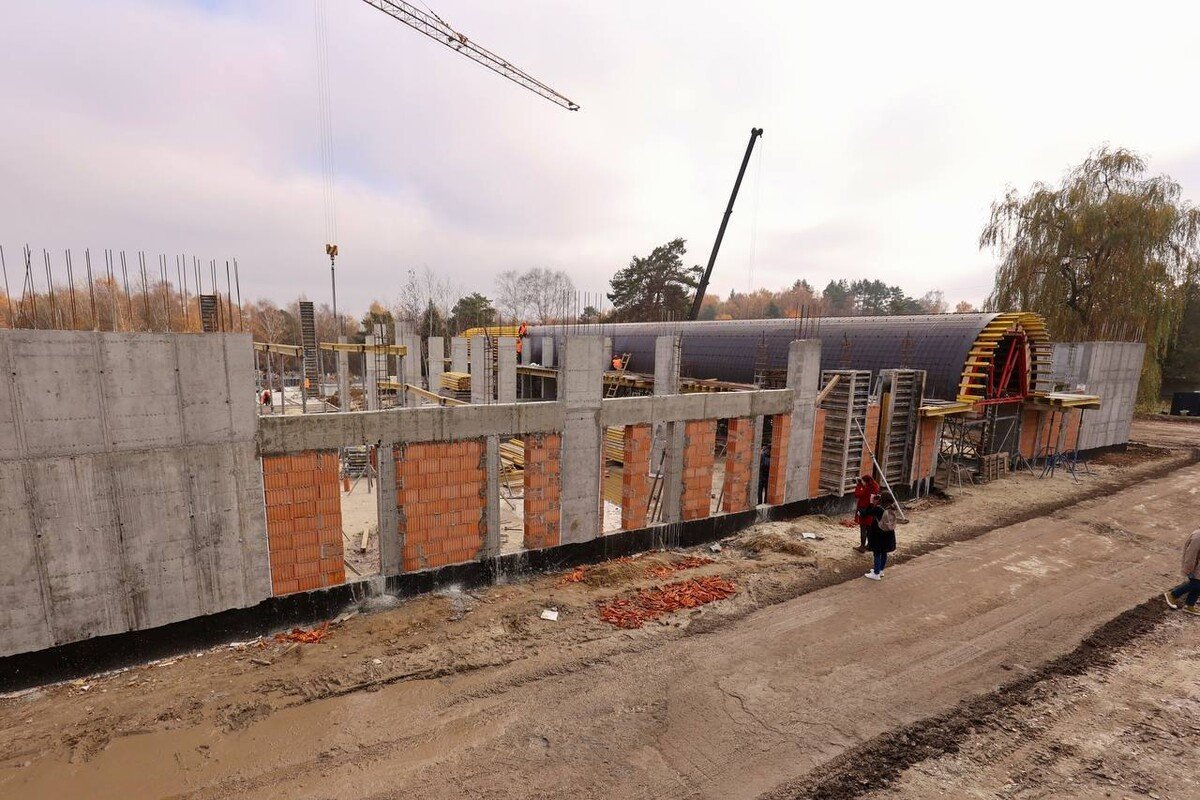 Працівники підрядної організації «Інфрабуд» вже завершили бетонування більшої частини будівлі, звели 70% стін, проклали основні мережі та змонтували складні конструктивні елементи, зокрема аркове склепіння.