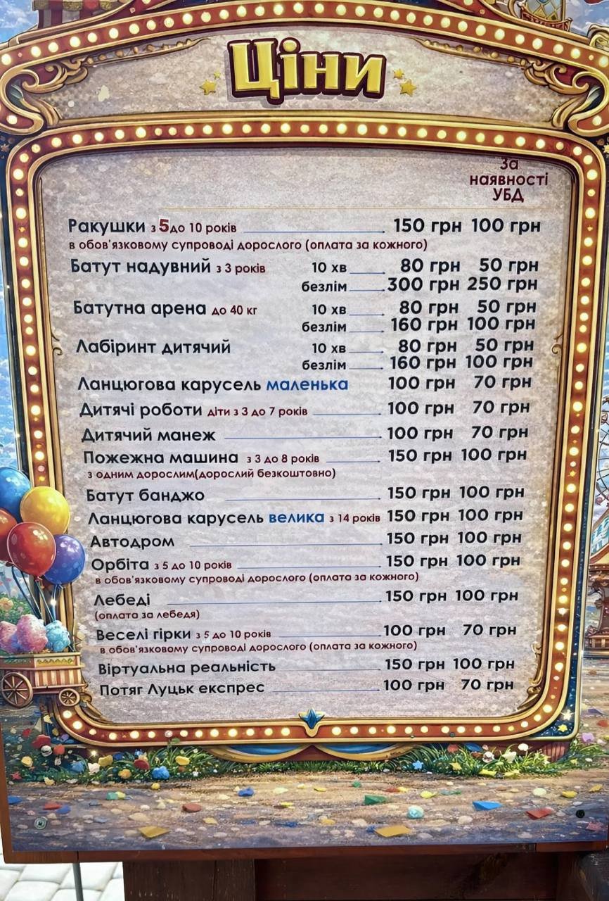 Ціни на атракціони. Фото: Валерій Безпалий.