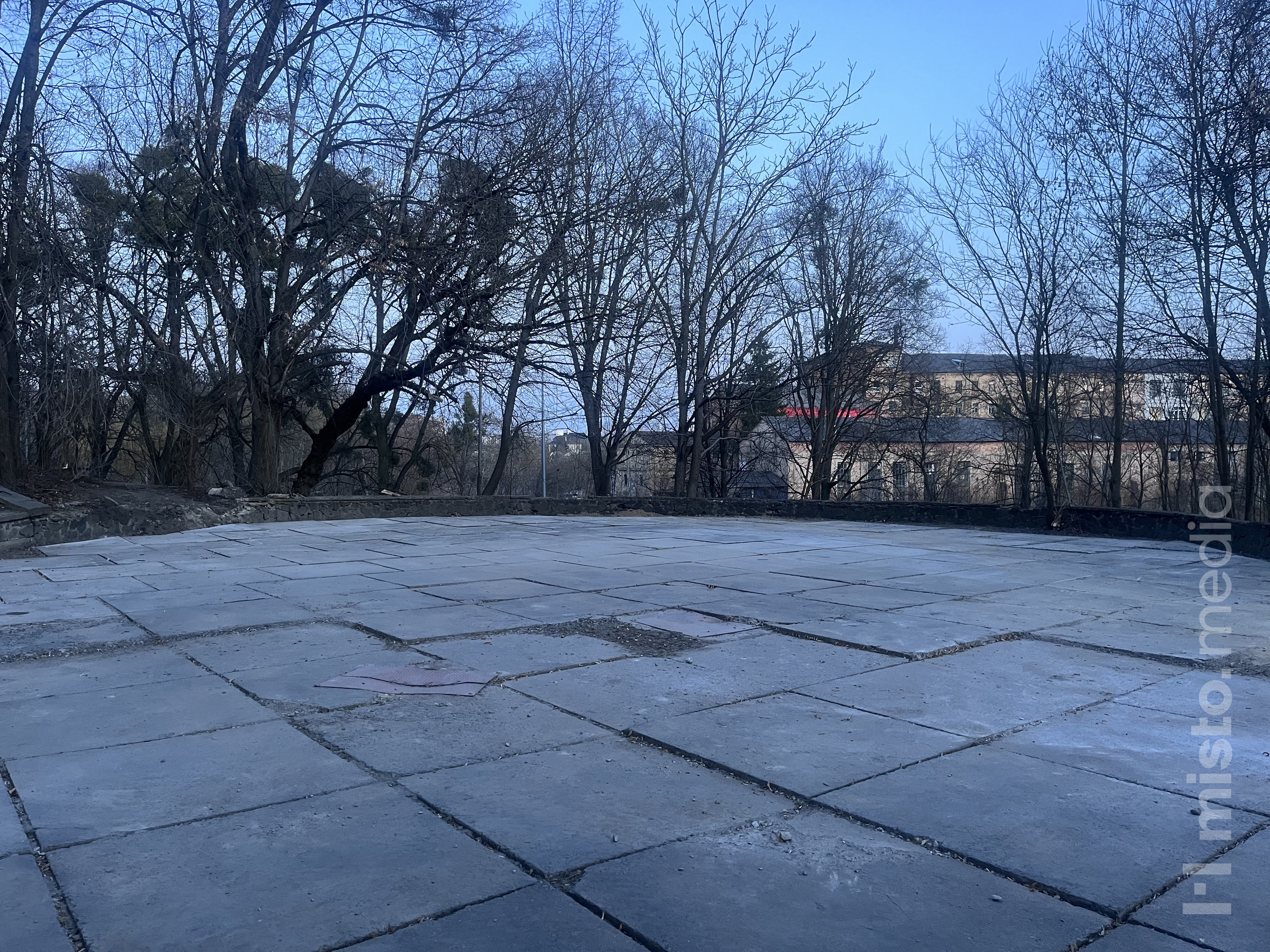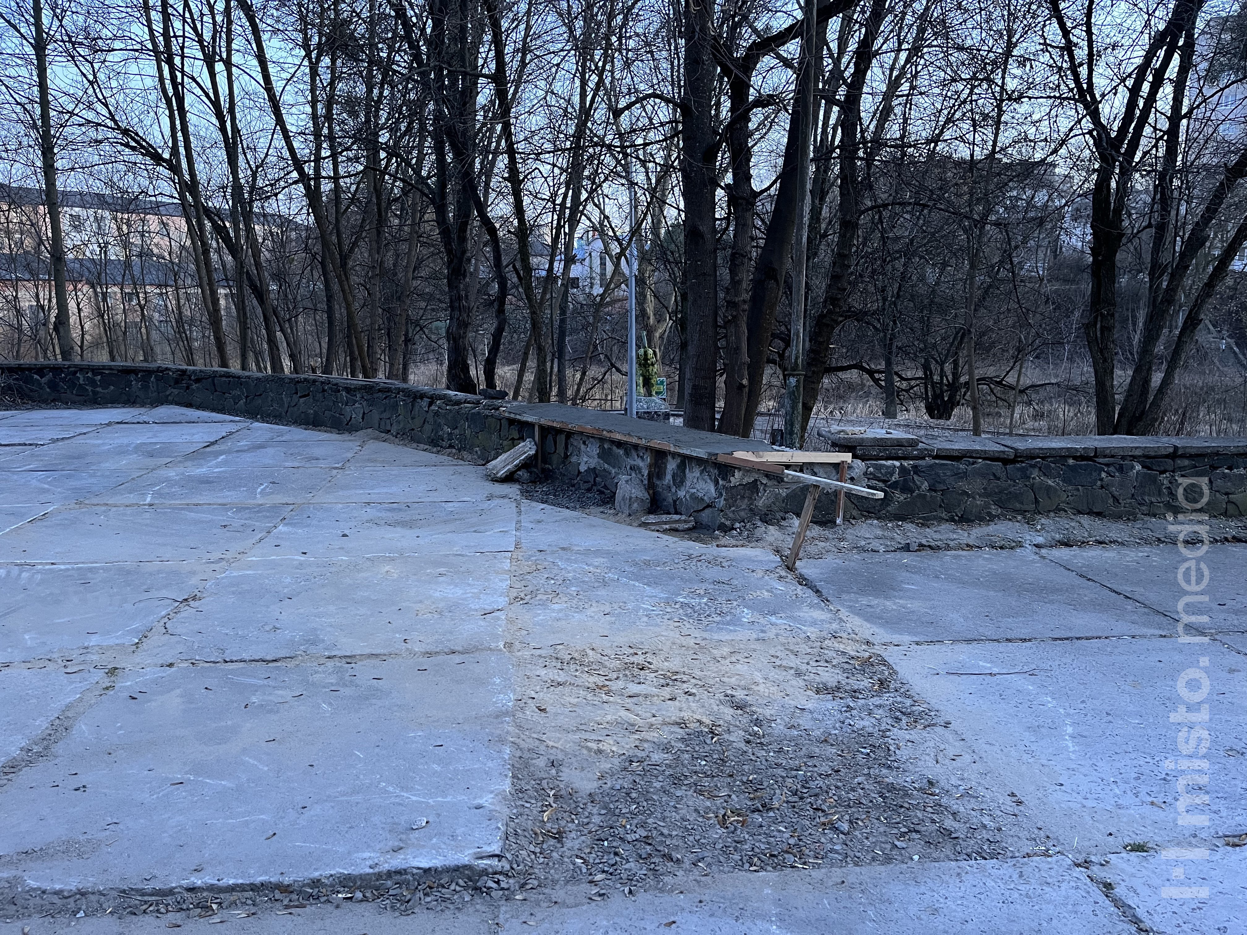 Ще торік там почали укладати бруківку та вирівнювати плити. Роботи виконували напередодні Нового року у грудні, розповів у коментарі misto.media директор закладу Сергій Кравчук.